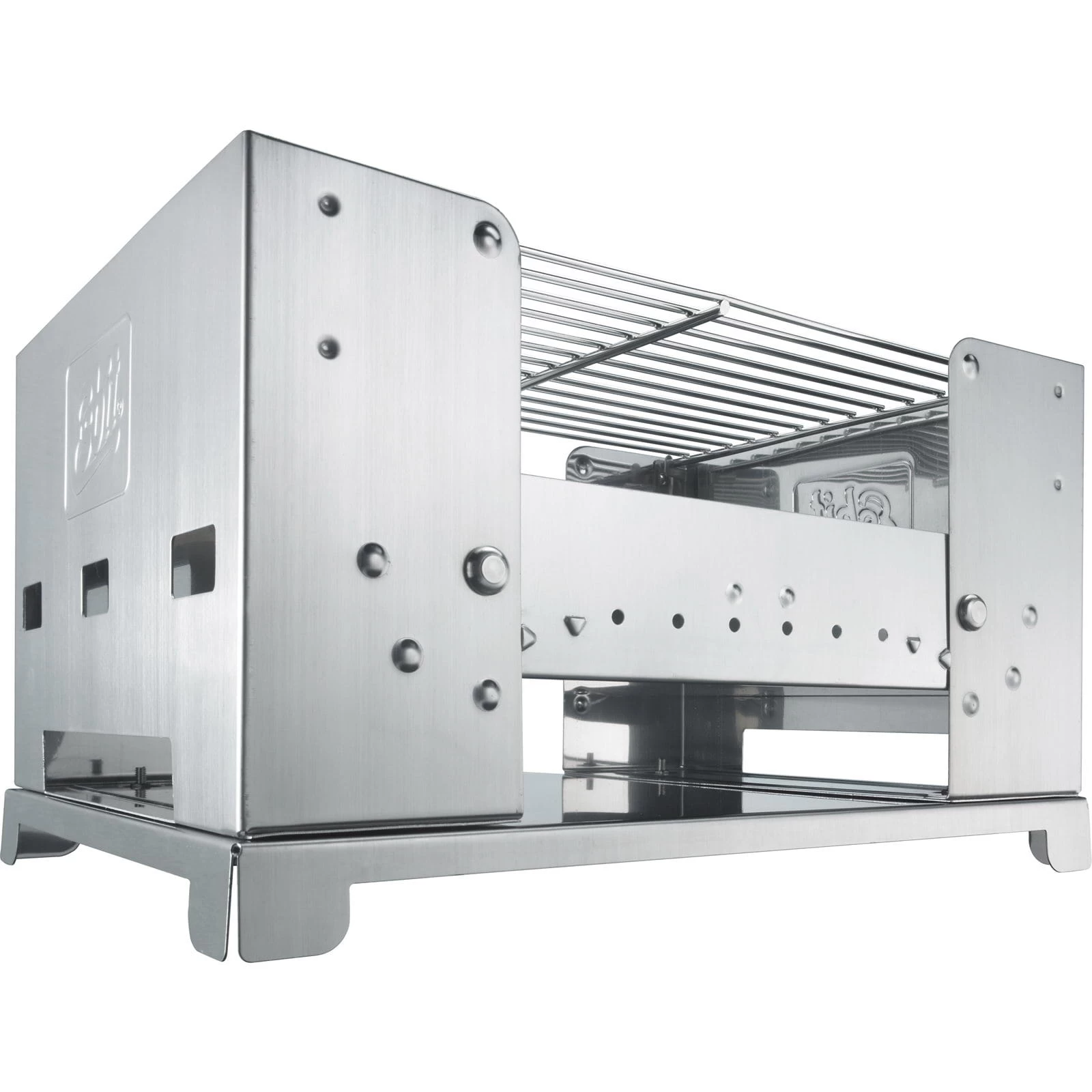 Sehr pfiffiger Grill aus Edelstahl für unterwegs. Mit höhenverstellbarem Grillrost und wasserfestem Beutel für die Grillkohle! Den berühmten Esbit-Kochern in der Klappfunktion und im Design nachempfunden und mit Sicherheit der perfekte Begleiter für mobiles Grillen. Alles dabei und dennoch sehr kompakt dank der einklappbaren Wände. Kein Schmutz vor oder nach dem Grillen, denn nicht nur die Kohle kann man im mitgelieferten Kohlesack (Nylon, wasserfest beschichtet) einpacken, sondern auch den ganzen Grill in der beiliegenden Tragetasche (wasserfest beschichtetes Nylon mit gepolstertem Trageriemen und Klettverschluss).