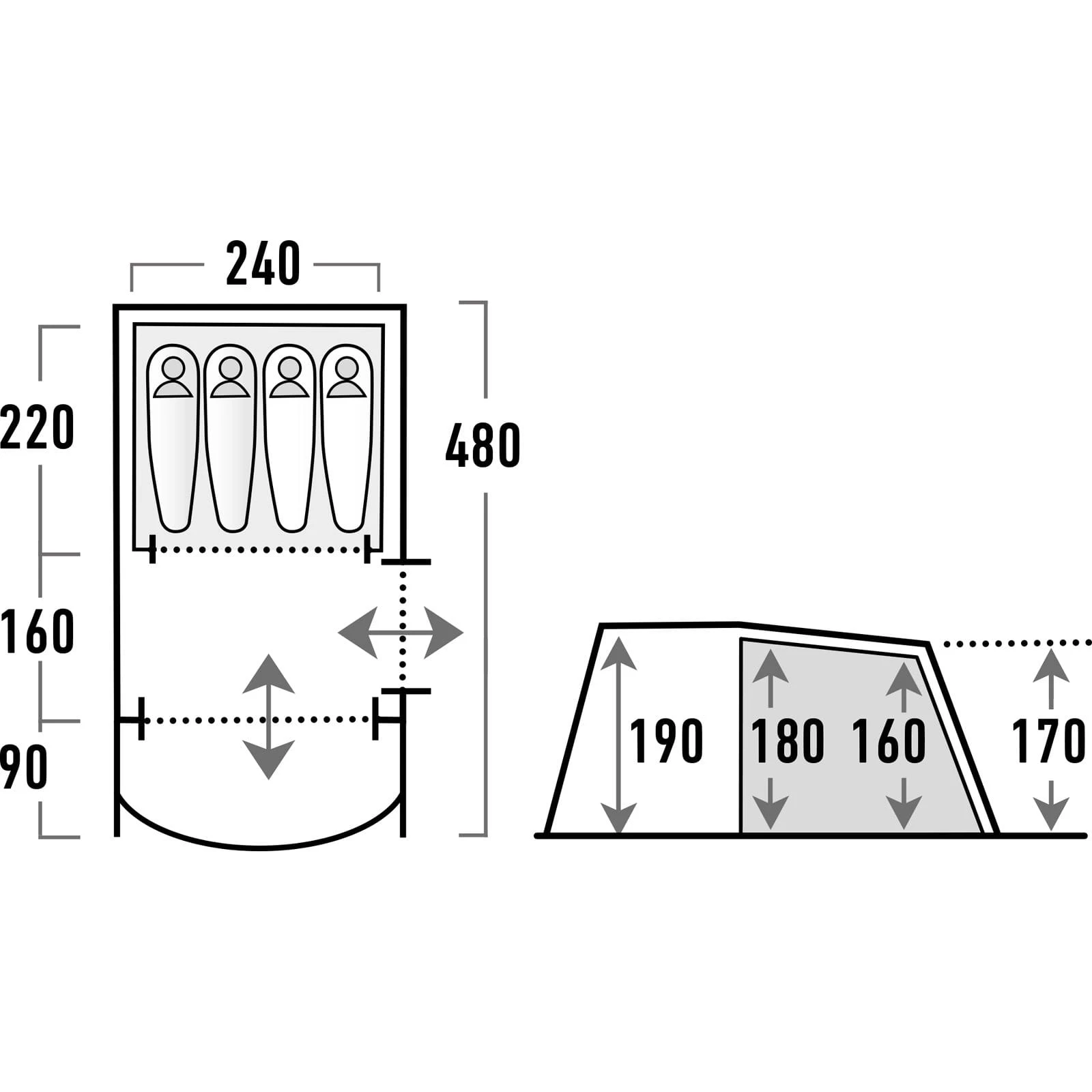 | Maße Außenzelt ca. | 480 x 260 x 190 cm |