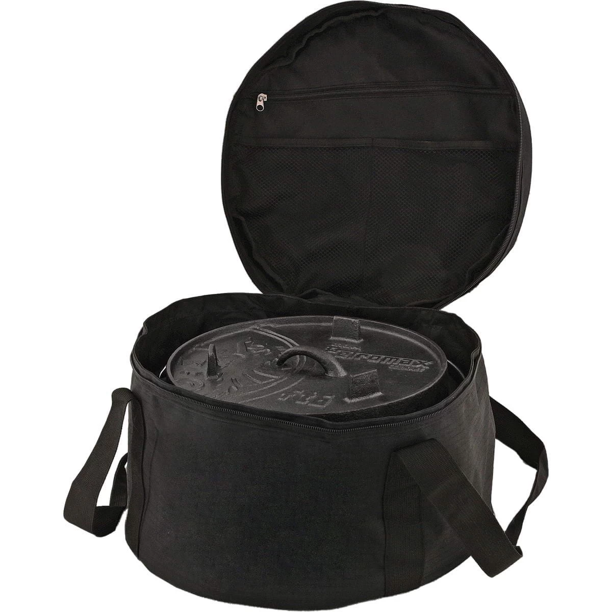 In der Petromax Feuertopf-Tasche Modell ft 3 lassen sich elegant der Petromax Feuertopf oder Dutch Oven ähnlicher Größe verstauen und transportieren. Die Tasche ist mit dem traditionellen Drachenlogo und dem Petromax Schriftzug bestickt. Sie ist extrem reißfest durch das verwendete Ripstop-Nylon. Höchstmögliche Stabilität, Reißfestigkeit und Langlebigkeit sind so garantiert. Die besonders verwebten Griffe und der verstärkte Boden garantieren hohen Tragekomfort. Der Boden ist herausnehmbar und kann somit bei Bedarf einfach mit einem feuchten Tuch abgewaschen werden. Die Tasche besitzt im Deckel weitere Taschen für Zubehör, Petromax Zunder, Streichhölzer, etc.