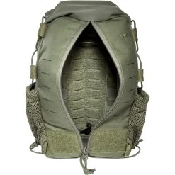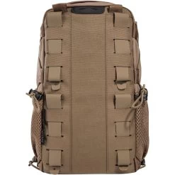 | Merkmale | Befestigungsschlaufen, benötigt vier MOLLE-Schlaufen, elastische Materialschlaufen innen, elastische Seitenkompression durch Bungee-Cord-Verschnürung, große MOLLE-Klettfläche innen, Halterung für Trinkblase, Innenaufteilung mit diversen unterschiedlichen Befestigungsmöglichkeiten für Ausrüstung, Klettfläche auf der Front (Flausch), Lasercut MOLLE-System, MOLLE-Reverse-System, Schlauchdurchführung für Trinksystem, Schnellzugriff durch Mittel-Reißverschluss, zwei seitliche Netztaschen mit Schnürzug |