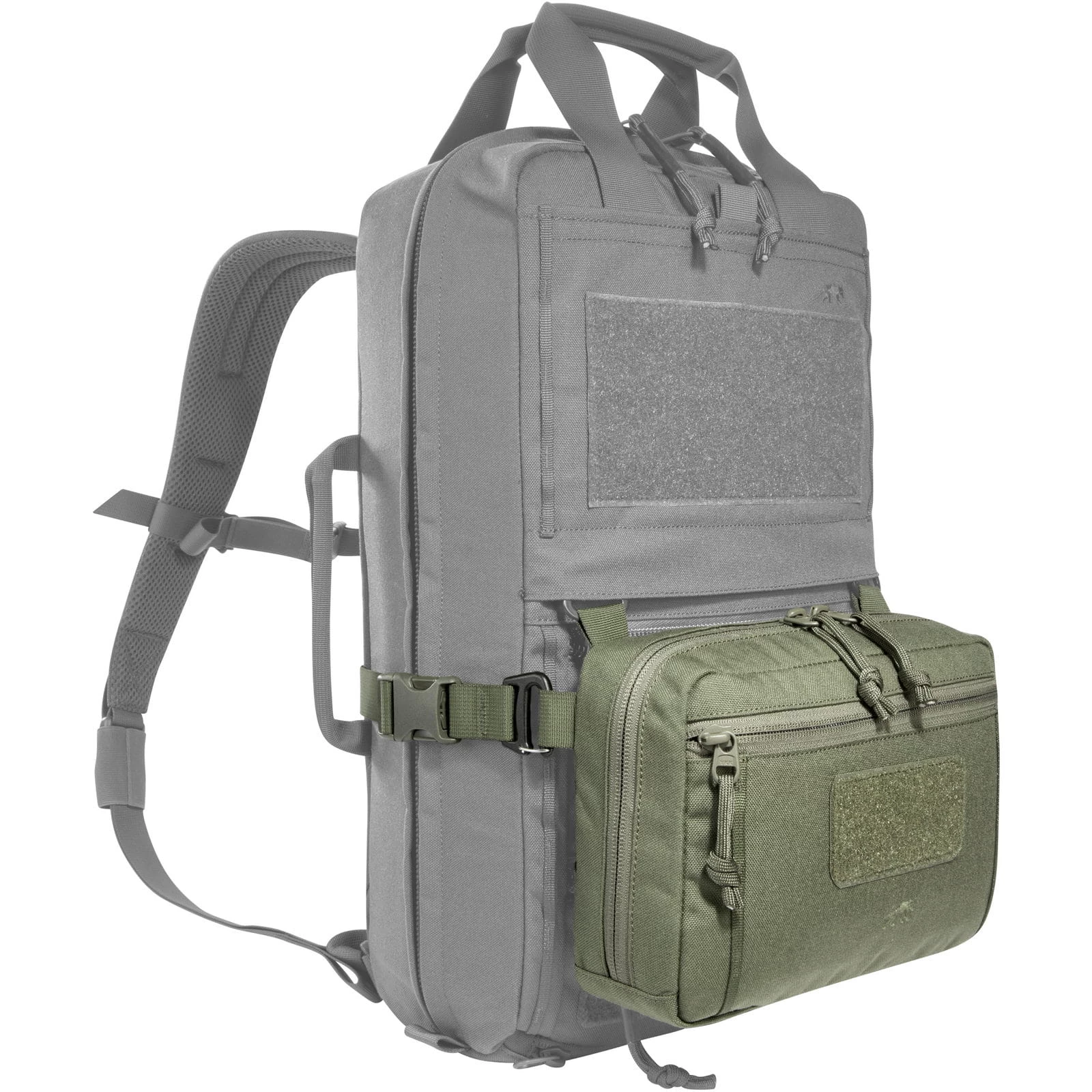 | Merkmale | Bauchgurt verstellbar von 80 bis 130 cm Umfang, benötigt vier MOLLE-Schlaufen, Daisy Chain vorne, Durchlass für eine 50 mm-Gürtelschlaufe, elastische Schlaufen, elastische Schlaufen für Knicklichter am Boden, Fixiermöglichkeit für Ausrüstung durch mitgelieferten Bungee-Cord, flache Netztaschen innen, große MOLLE-Klettfläche innen, Gurtbandsystem zur Aufnahme von zusätzlicher Ausrüstung, Hüfttasche kann ohne Hüftgurt mit Haken in MOLLE-System eingehängt werden, kann auf dem TT Survival Pack als Zusatztasche eingehängt werden, Klettfläche auf der Front (Flausch), längenverstellbarer, abnehmbarer Hüftgurt, MOLLE-Reverse-System, Reißverschluss-Frontfach, weit zu öffnender Reißverschluss |