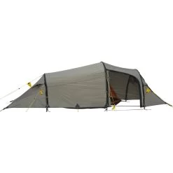 In seiner Art unverwechselbar: Eines der erfolgreichsten Modelle von Wechsel Tents: das Outpost 2 ist seit Beginn an im Zelt Programm von Wechsel. Sehr geräumig für 2 Personen. Der einzigartige Innenzeltschnitt bietet auch einer sehr großen Person einen komfortablen Schlafplatz. Es bietet die Vorteile einer asymmetrischen Tunnelzeltform wie z.B. relativ geringes Gewicht und hohe Sturmstabilität bei großer Apsis und geräumigem Innenzelt. Es hat einen regengeschützten, abdeckbaren Moskitogaze-Innenzelteingang in D-Form und eine große Apsis mit zwei Eingängen. Die großflächige Dachlüftung der Apsis, die sich vom vorderen bis zum mittleren Gestängebogen erstreckt, verbessert deutlich die Belüftung. Um die Abdeckung dieser Fläche zu realisieren, wurde das Zelt mit effizient zu handhabenden außen liegenden Gestängekanälen versehen. Das Innenzelt bietet viel Platz für zwei Personen und ist mit einer rückwärtigen Ventilation und vielen Taschen versehen. Der seitliche Eingang und ein vorderer Eingang machen das Handling mit Gepäck einfach. Bei aufgerolltem vorderen Eingang bietet sich ein hervorragender Panoramablick aus dem Zelt. Im Vergleich zum Modell bis 2018 verzichtet Wechsel Tents auf die Dachlüftung im Apsisbereich.